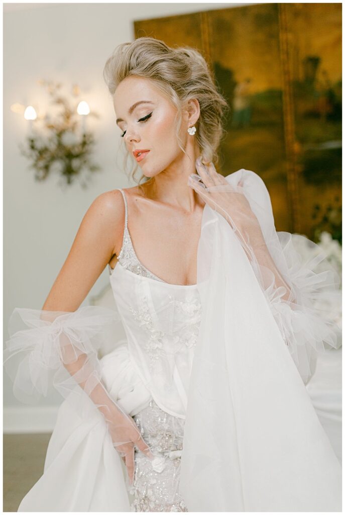 Mozart bridal editorial in white and gold