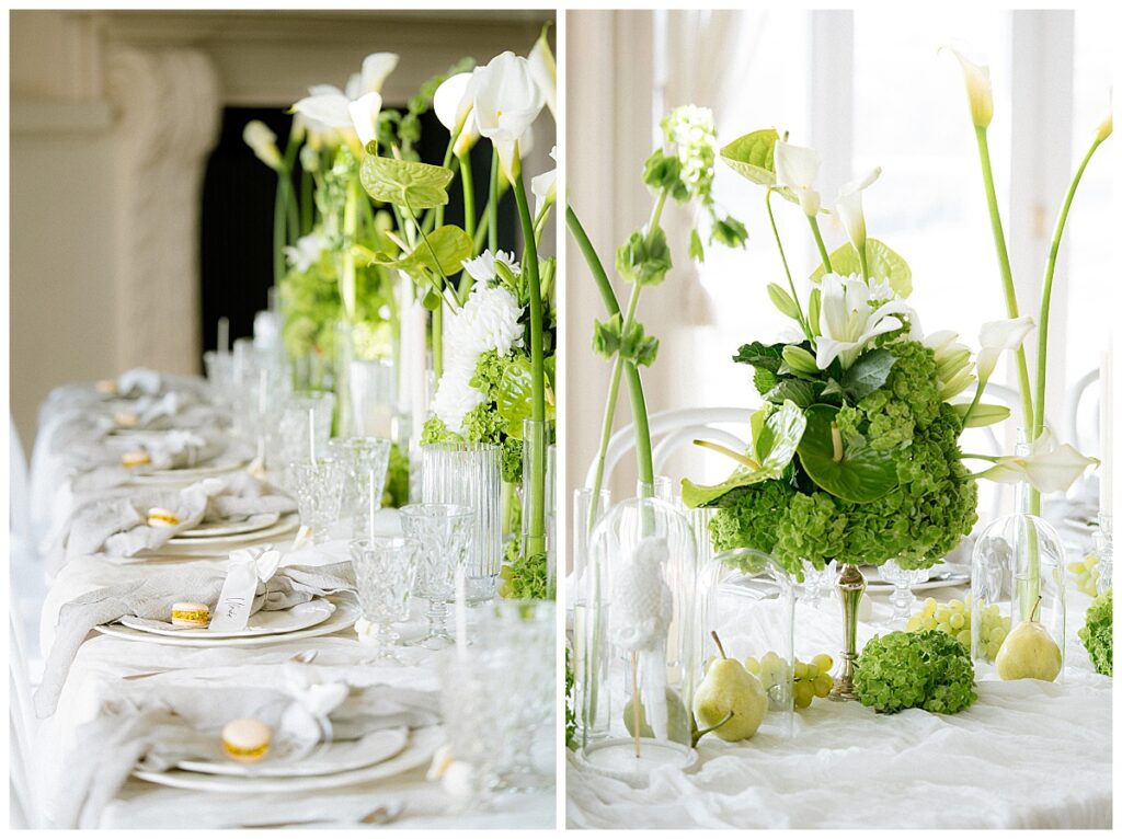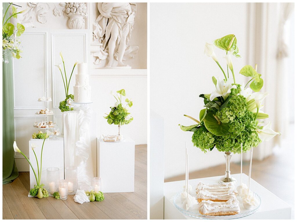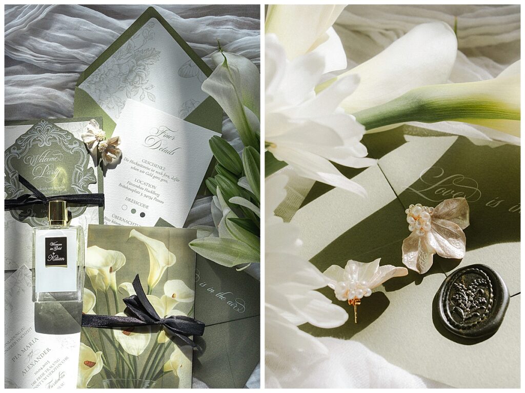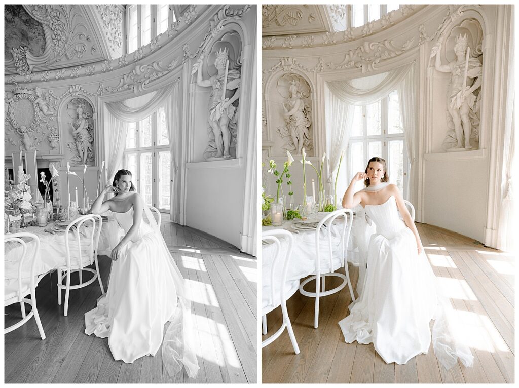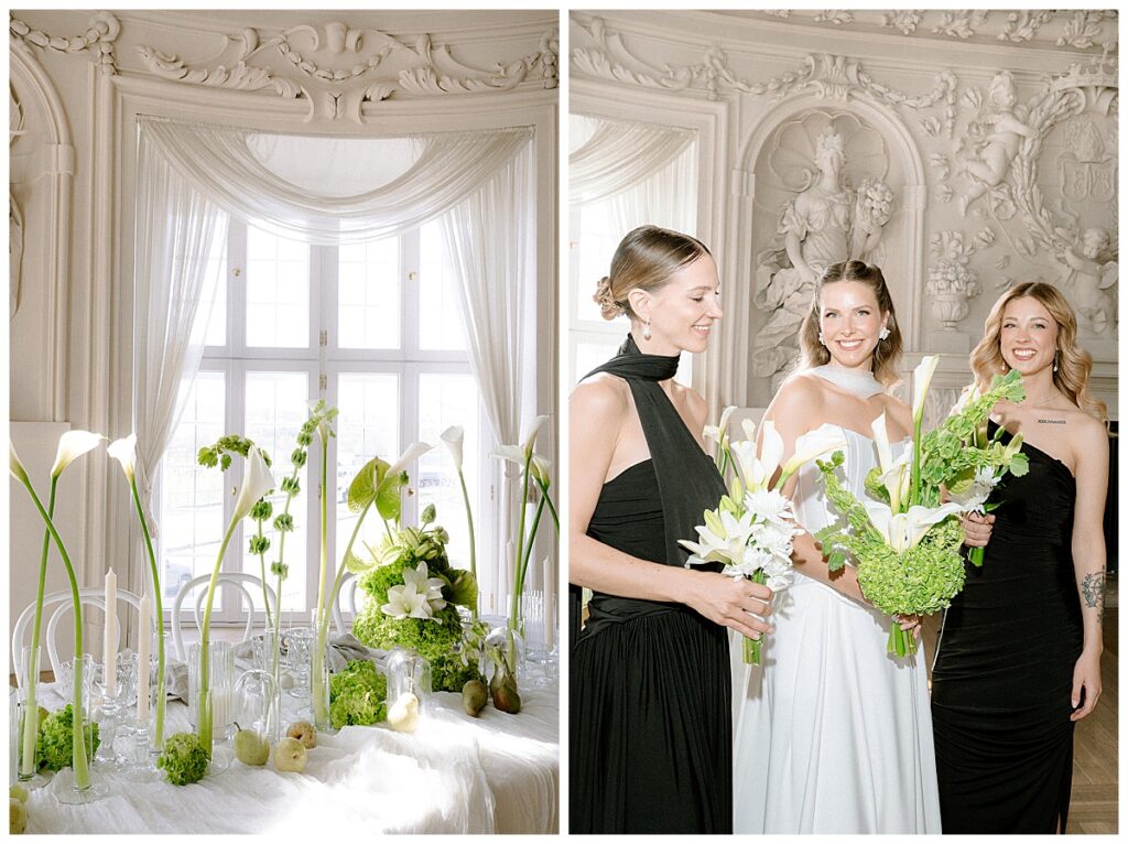 This styled shoot showed how powerful a reduced world of color can be when materials, proportions and details are perfectly coordinated. White and green, lush fabrics, floral lightness and architectural richness combined to create a harmonious overall concept that appeared timeless, elegant and extraordinary.