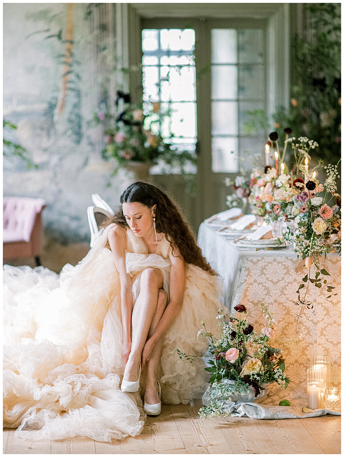 This time, photographer Whitney Heard excites us with a styled shoot, in which she brought together what obviously belongs together: grace, elegance and a touch of glamour. In Northern France she found inspiration for it as she told us: „This inspiration shoot takes place at the gorgeous Chateau De Santeny in northern France. The story behind this Chateau is pure magic, it was used as a young men’s boarding school until it was forgotten an abandoned until the new owner put in the time and love to bring the Chateau back to its original state.“