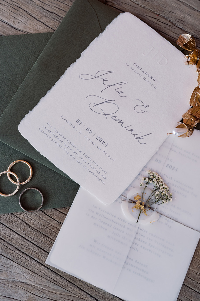 From the initial idea to the finished print Paperberry Design step by step. In a personal exchange, your ideas are recorded, further developed and transformed into stationery that creates a harmonious overall picture and stylishly underlines your wedding. The result is a design that reflects your personality, captures your emotions and immerses your guests in the magic of your celebration right from the start.