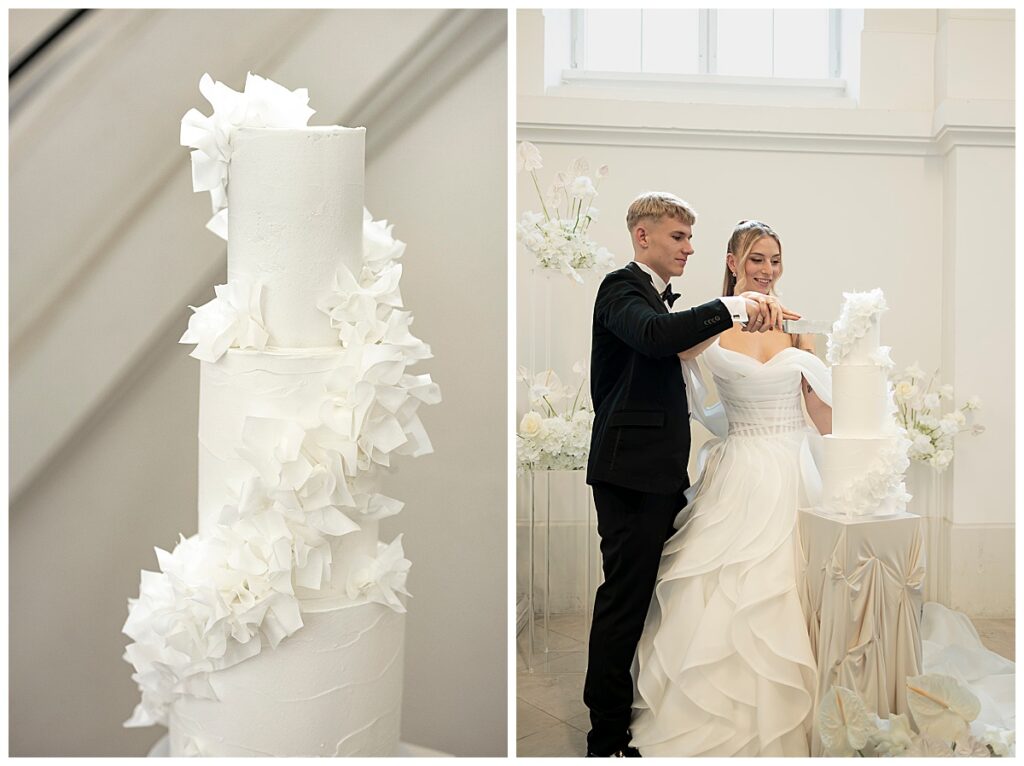 The wedding cake from MY Cakes & Sweets picked up on the minimalist design language and complemented the setting with a calm, elegant presence. The accessories were also deliberately chosen. The shoes and the engagement ring set subtle accents without disrupting the clarity of the overall concept.