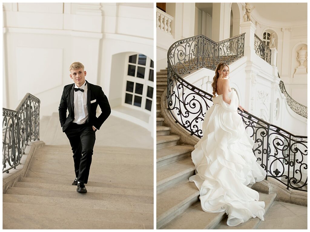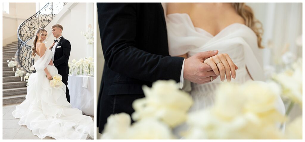 In the light-flooded staircase of the Landhaus Dresden, “IVORY VEIL” was a wedding concept that was entirely dedicated to quiet elegance. Planned and conceived by Frame The Journey, a visual language was developed that relied on reduction and thus unfolded its full effect. The shoot was photographed by Sophie Gestrich, while Manoora captured the moving images.