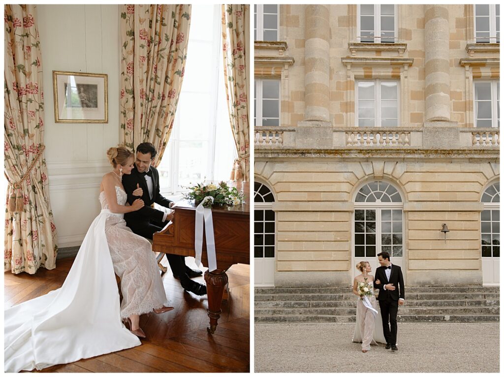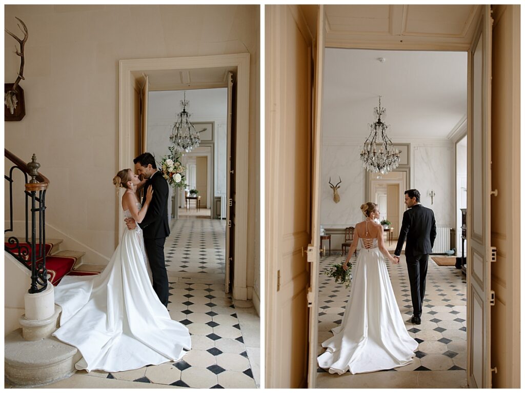 Hand-embroidered napkins, a personalized bouquet ribbon and handmade designer jewelry added special touches. A live painter accompanied the editorial and captured the mood in front of the château in a painting – a timeless detail that more and more couples are choosing for their wedding.